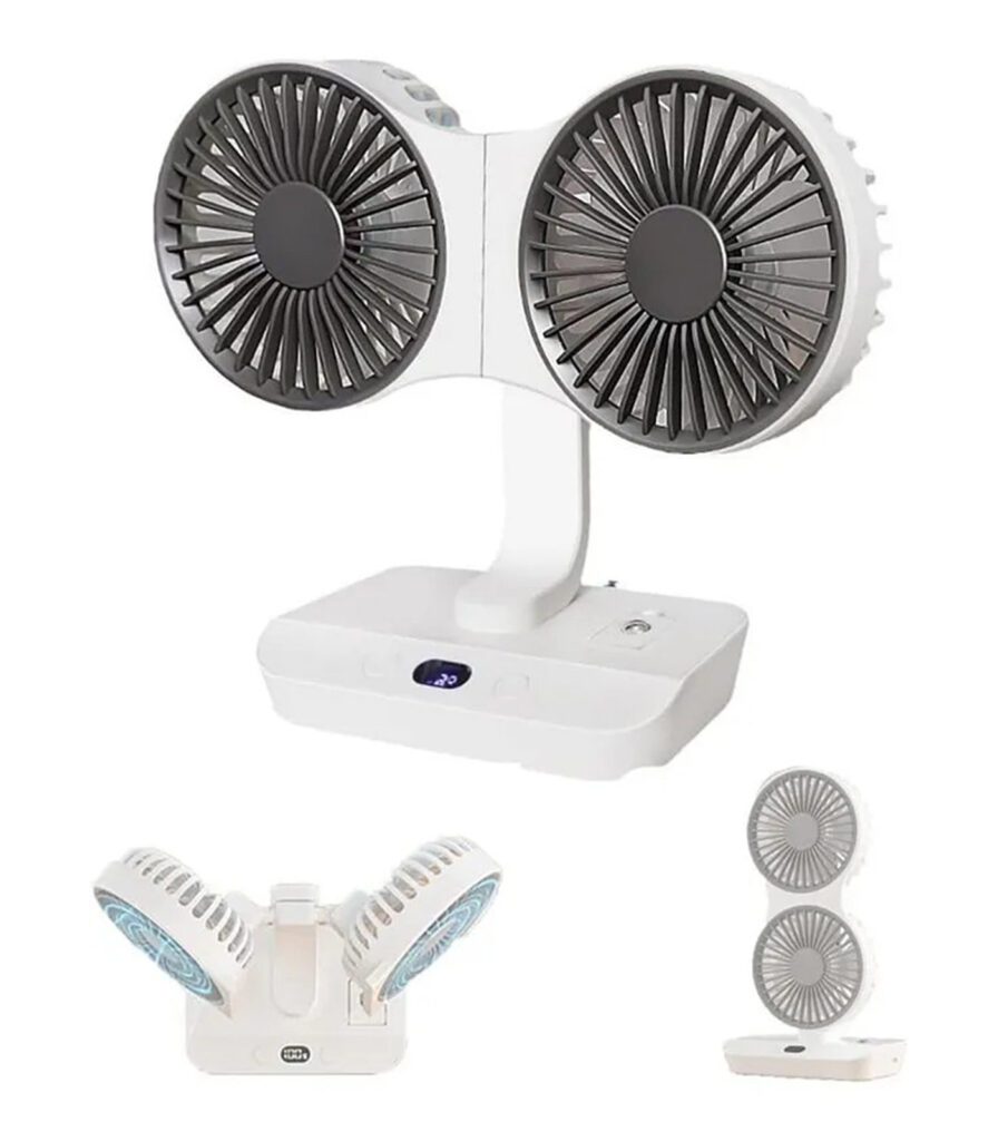 Çift Kafa 4 Hız Vantilatör Gece Lambası Fan Şarj Edilen Taşınabilir Asma Kancası ile 270° Dönebilen