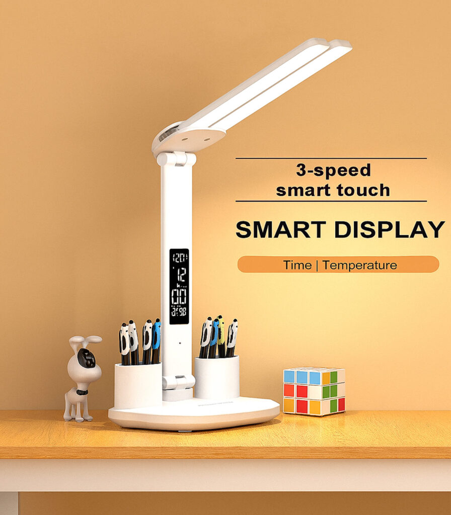 Çok Fonksiyonlu Şarjlı Masa Lambası Saat Termometre Takvim Kalemlik Telefon Tutucu