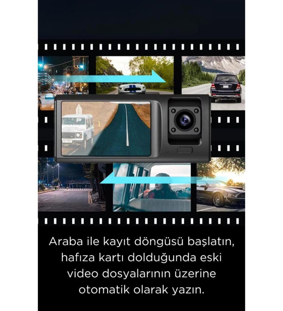 3 Yönlü Araç Kamerası DVR Kaydedici Wifi 3 Kameralı Araç DVR 1080P Kamera