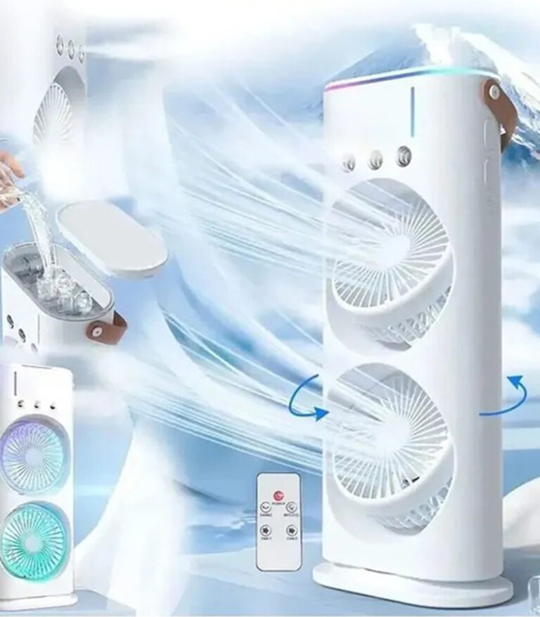 Şarjlı Kumandalı Dönen Işıklı Buz Buharlı Vantilatör Fan Nemlendirici Klima Soğutucu Çift Fanlı